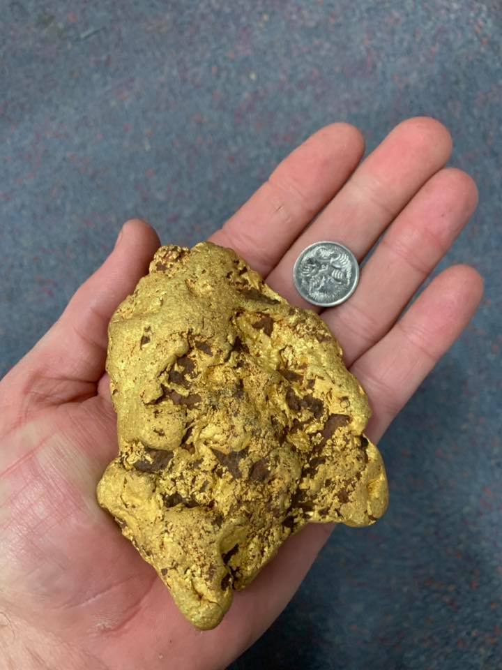 從以下的照片可以看到,這位男子非常幸運,他原本只是拿著金屬探測器在澳洲,結果就偶然在鹽沼發現了這塊「巧克力餅乾」,而且金屬探測器還有反應,仔細一看才發現這一塊都是黃金!小編看到這裡就覺得,這到底需要多大的運氣才可以發現這個大金塊?根據報導,這個消息是由西澳的金屬探測器店老闆Matt Cook透露的,他表示當時那位男子回來時,臉上帶著得意的笑容,手上就拿著這塊「黃金餅乾」。