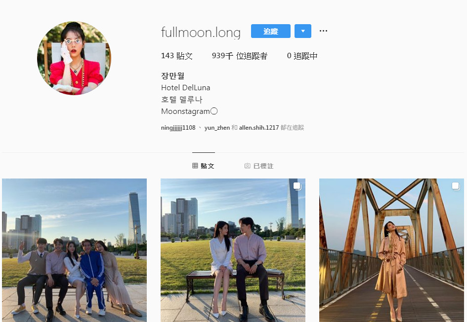 「张满月社长」IU为了这出剧,还特地在IG上开创了一个新帐号,专门上传剧照和花絮照。想念社长大人的,可以去追踪他的帐号喔!