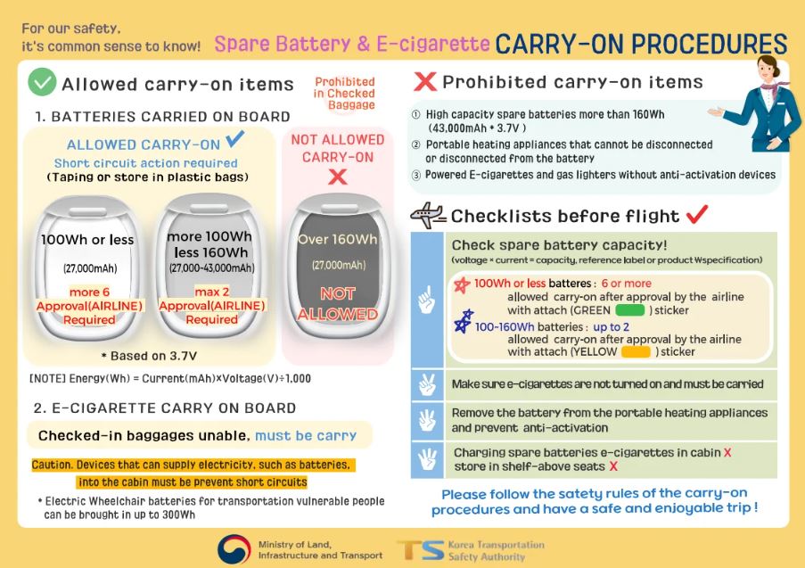據了解,一般行動電源、鋰電池是能隨身帶上飛機的,但不可拖運,若電池為「不可拆卸」且無「飛航安全模式」,在許多國家的機場安檢有嚴格規範,尤其是日本、南韓、紐西蘭,通常會面臨被沒收或丟棄的命運。艾莉因此在社群媒體分享慘痛經歷,呼籲其他旅客引以為戒,也建議若要攜帶類似電器,最好選擇電池可拆卸或有線的產品。