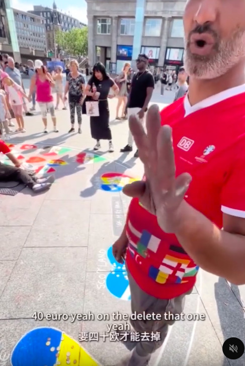 根據《三立新聞網》、《自由時報》報導,有網友將有片PO上抖音,只見中國遊客發現地上沒有中國國旗後,十分不悅,要求畫家立刻補上。然而,畫家直言,需要支付40歐元 (約新台幣1500元) 才能畫,但中國遊客覺得太貴,問「能不能畫小的就好?」畫家則說「小的無法顯現重要性,這樣不尊重。」