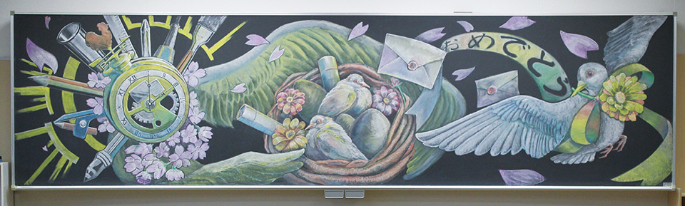 而日本這間名為Nichigaku的黑板公司就相中了這個人們的共同回憶,舉辦了一場名為”黑板塗鴉甲子園”的比賽!上面這張是高知縣高知西高中獲得”最優秀獎”的作品!(這真的太扯會畫了…)