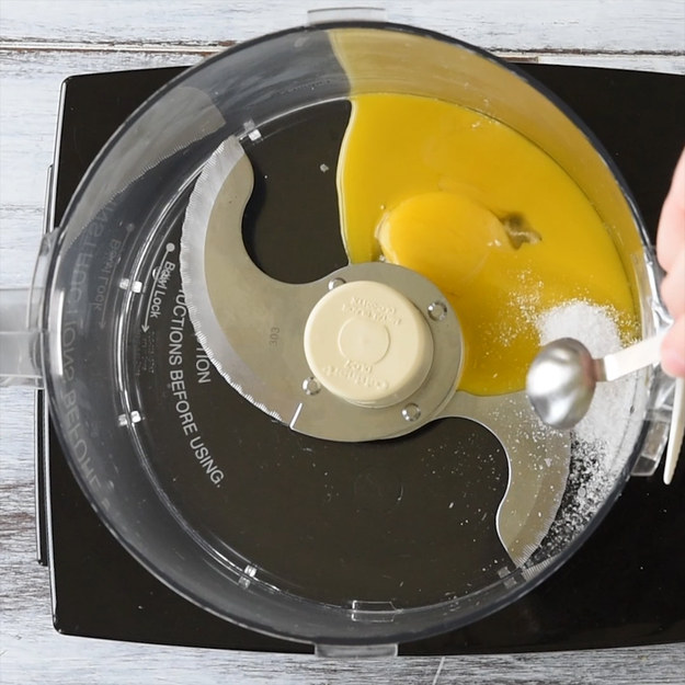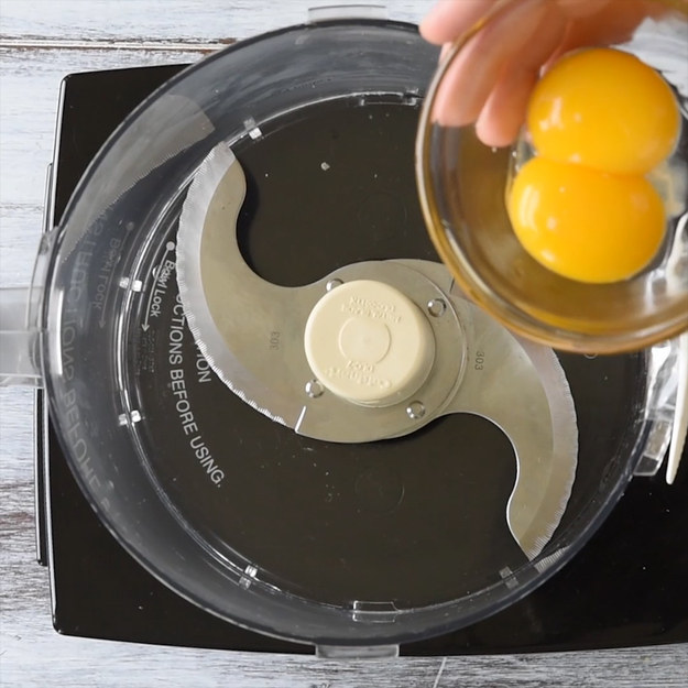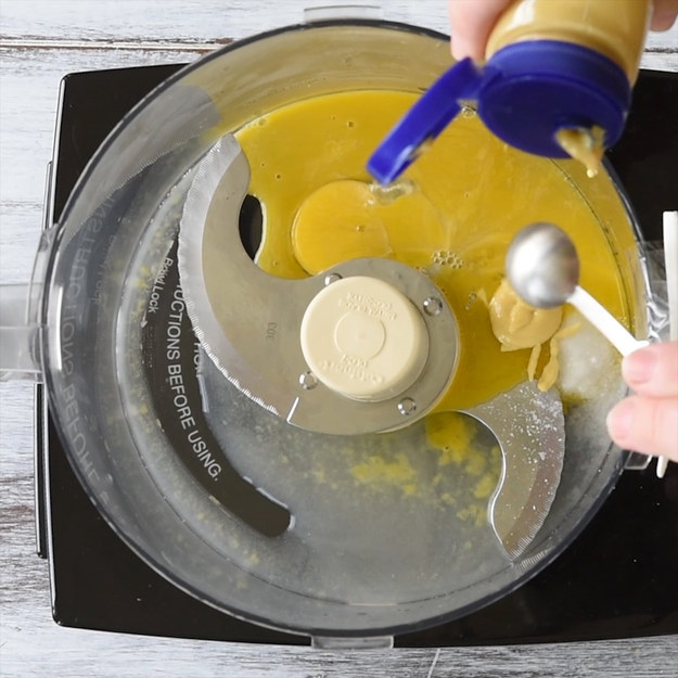 8. 在攪拌的過程中,慢慢地把油倒入,這個過程大約花30~60秒的時間。