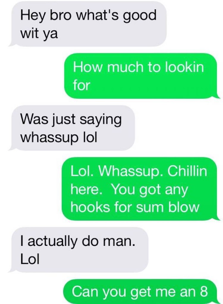 這名毒蟲傳訊息給賣家想要買大麻,結果卻傳錯電話號碼,給了世界上最不該傳給的人。