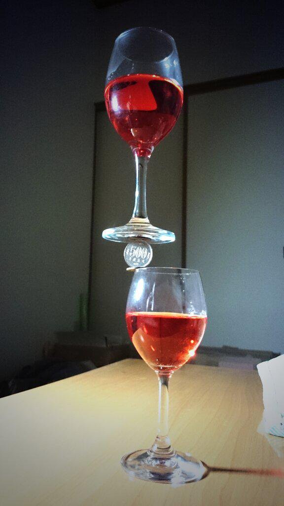 7. 他也不只能疊硬幣,上面放酒杯也不是問題!