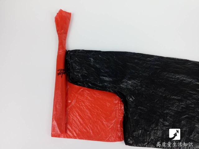 接著把整個塑料袋捲起來,尾部剩一些距離後,把另一個塑料袋放上去。