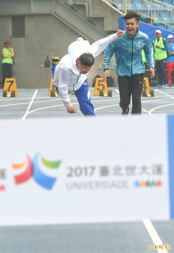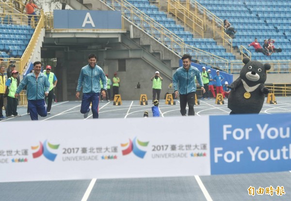 台北田徑場在去年9月開始場館整建工程,在上個禮拜 3月29日終於完工!今日上午台北市長柯文哲到現場去檢查結果,還想順便測試跑道,所以根世大運選手、熊讚、市府官員一起在新的跑道上跑步。
