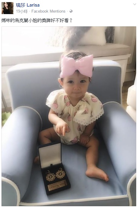 不過這篇文章被其他媒體報導之後,有網友分享給瑞莎本人看,瑞莎在自己的臉書上分享,並說自己晚點會PO出一張照片,大約隔了2分後,瑞莎就貼出一張女兒Nika指著獎牌的照片,並說「媽咪的烏克蘭小姐的獎牌好不好看?」很可愛的進行了反擊,讓網友大笑說「烏克蘭小姐要的不只外表,內涵也很重要啊!瑞莎又能很流暢的使用不止一種語言,這就是優勢。」、「地方的媽媽激不得」、「烏克蘭小姐獎牌耶!證明不是中上,是頂尖!」不過更多人是注意到可愛的Nika太吸睛了!