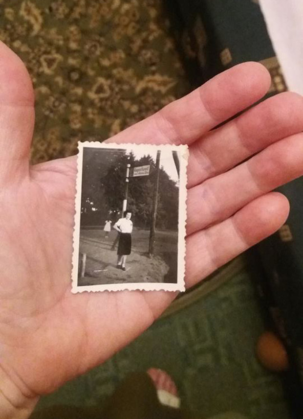 照片攝於1943年的匈牙利科坡士瓦 (Kaposfüred),前景的女子是原PO的媽媽,拍照者為原PO爸爸,後面是一位沒有手、沒有臉的小女孩。
