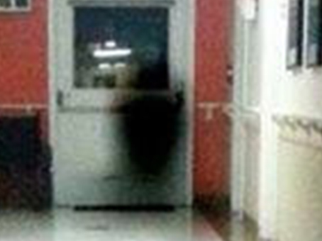 在病房拍攝的這張照片意外捕捉到了不存在真實世界的人影,而且可以清楚看出祂正在以非人類的姿勢在床上行走,當時病床上的病人正準備動手術。拍下這張照片的護士透露,當晚那位病人過世了。