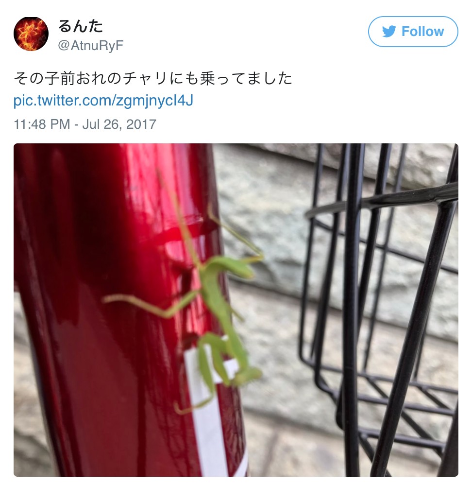 TEEPR小编:也太可爱了,感觉那只螳螂没有想要下车一样,根本就是在享受兜风的感觉嘛!