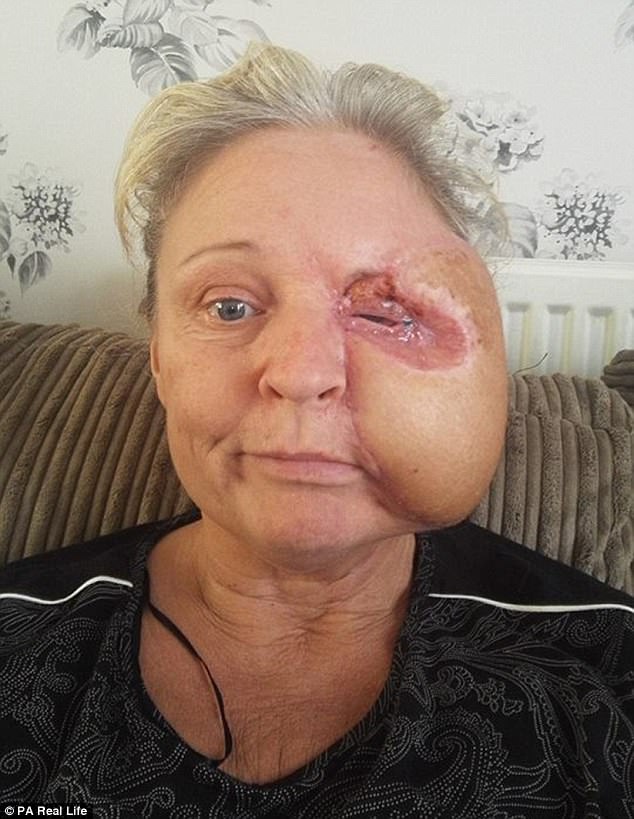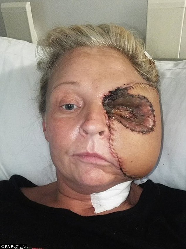 一名3個孩子的媽媽,被診斷出得了一種會吃人肉的細菌感染,讓她半個臉都沒了。46歲的Donna Corden回想起在今年年初時,因為一個小意外,眉毛上被颳了一個傷口,但才過24小時,她的臉整個黑掉,也感到暈眩,所以她很快的到了醫院檢查。醫生診斷出這是一種會吃人肉的細菌