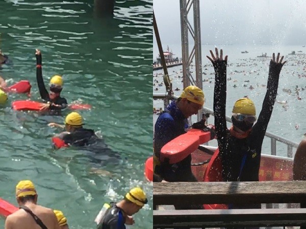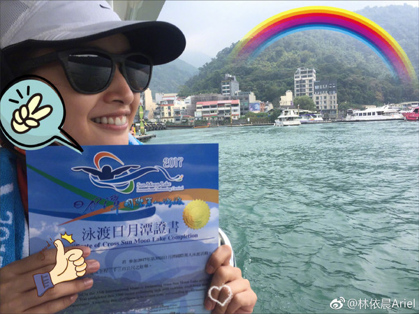林依晨花了2小時半的時間完成泳渡日月潭的挑戰,開心曬了一系列照片。
