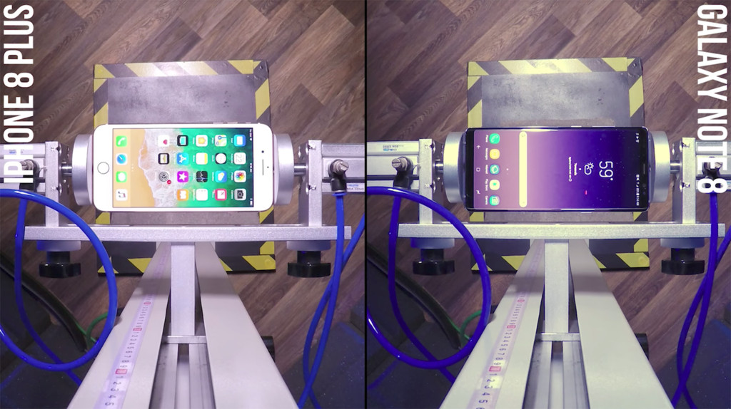 iPhone 8 出囉,有朋友買嗎?在蘋果之前宣布2017年的新手機iPhone 8、iPhone 8 Plus、iPhone X時,他們有強調手機後面的玻璃用的是「在手機上用過最強的玻璃」,所以意思就是如果高空丟下來的話,應該會比其他手機還要耐摔吧?但網友還是想來測試看看到底是不是真的!所以這次YouTube頻道「PhoneBuff」拿了一台iPhone 8 Plus跟一台Samsung Galaxy Note 8,一起做從高空摔下的實驗。