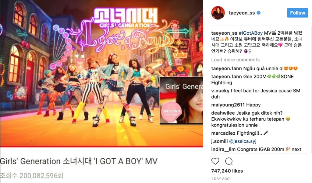 已經出道長達10年的韓國女子天團「少女時代」,在不久前爆出Jessica退團後,陸續有團員不再續約,而隊長太妍也公開表示對SM公司不滿。近日少女時代在2013年推出的歌曲《I Got A Boy》在YouTube上成功突破2億觀看次數,讓超多人開心為她們慶祝!但太妍好像對公司處理這個事件的方式不太滿意,在IG上發文表示自己的不滿…