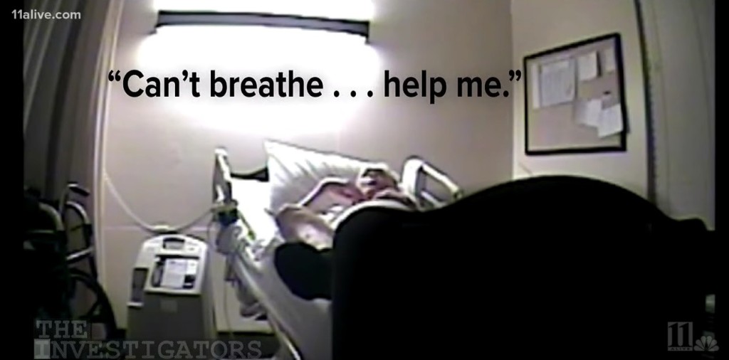 這位來自美國喬州的89歲老先生 James Dempsey,生前是一名退休的二戰軍官,隨著年紀越來越大,家人不放心讓他一個人住,所以將他送去安養院。只不過到那裏後,家人開始懷疑這間安養院說的跟做的不太一樣,所以偷偷安裝了一台監視攝影機偷拍,沒想到真的拍到老先生臨死前發生的事情。影片中可以看到老先生一直在求救,他說:「護士… 救命,我不能呼吸…」。