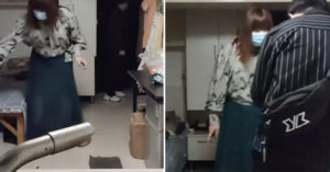 蹲下時前腳膝蓋呈90度,後腳膝蓋輕點地板,注意過程中要維持挺胸,膝蓋別超過腳趾,前腳膝蓋不能內彎。