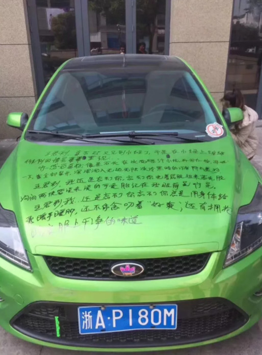 中国一名女子因为不甘心跟前男友分手,竟然找到前男友的车,蹲在地上拿出黑色签字笔就是各种写,这样的举动当然引起路人围观啊!没想到上前一看真的傻眼,女人「宁为玉碎不为瓦全」的心态很可怕啊,这位女子就这样把两人的床事直接写在车壳上,文字写得仔细露骨,还暗讽前男友「能力不足」。