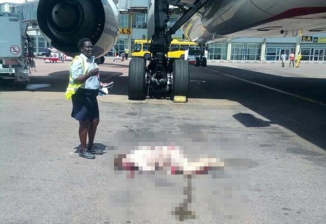 从图片可见,空姐奄奄一息地倒在跑道上,现场一大遍血肉模糊,非常可怕。警方现正调查事发原因。