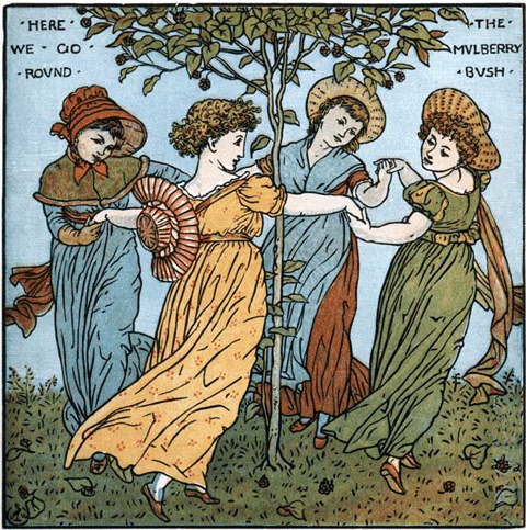 2. 我們繞著桑樹叢 (Here We Go Round The Mulberry Bush)。