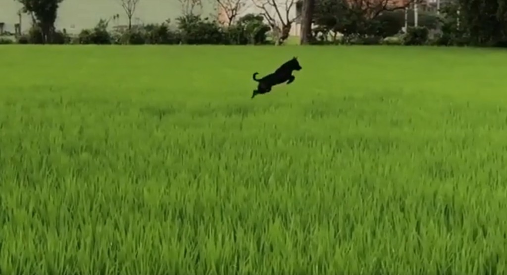 据了解,这只叫做「黑皮」的狗是一只弹跳力非常强大的狗狗,从影片中可见,牠到了阿公的田之后,就像发了疯似的狂跑狂跳,超像羚羊跑跳的模样,让主人惊呼,「开启赶羚羊模式了!」可见黑皮真的是很认真想要帮阿公看管好这一片田,以防有其他东西跑进来,只是若看到牠这样跳来跳去,阿公真的会开心吗?