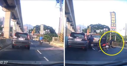 尖峰時段淡金路「8點檔真實上演」,情侶吵架「開車門往外跳」結果差點死的是後面騎士啊…(影片)