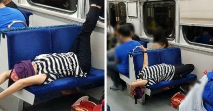 台灣阿祖媽「超軟Q體位」稱霸區間車,橫屍2座位「抬腿做瑜珈」竟然還有羞恥心自打馬賽克!
