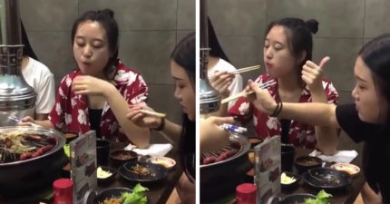 影/紅衣女孩猛吃狂塞「旁邊閨密神助攻」 網笑:最強吃貨助手