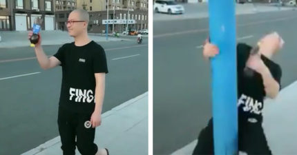 平頭哥路上耍帥 完美拋接花招下秒「躺地板Ending」糗到挖地洞!