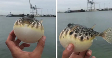 河豚被抓氣噗噗 下水立馬變成「漏風氣球」:你找不到我~