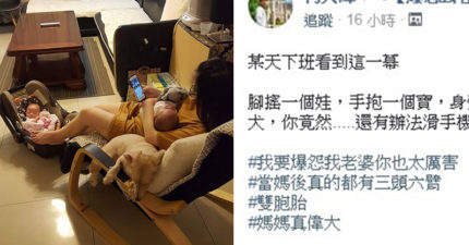 別小看地方媽媽!手腳並用顧寶寶還要哄小狗 爸爸驚恐:我老婆超猛