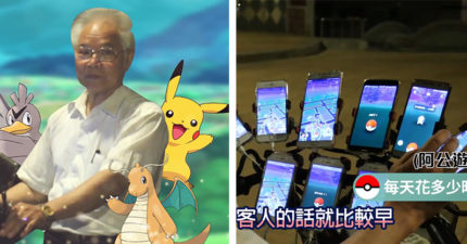 外國人都傻眼!抓寶阿公「10機綁鐵馬」圍捕寶可夢 花10萬變老版小智