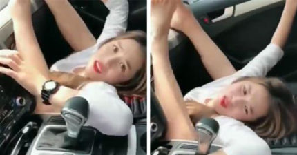 長腿女友「副駕駛座甜睡」 壞男友急煞直接對折卡洞:幹嘛啦~苦臉撒嬌萌翻