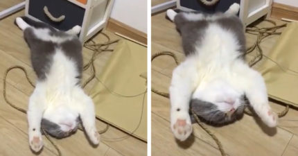 影/貓咪「井字翻肚睡」發出詭異呼聲 主人旁邊傻眼:是披著貓皮的豬?