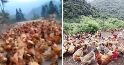 影/有飛「雞」!一吹哨驚動整座山2000隻雞 激動飛撲整個人被淹沒