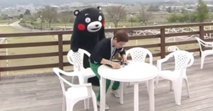 熊本熊太壞了!看準時機抽椅子 主持人狠狠跌到…下半身GG了