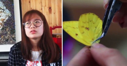 藝術系女學生「活摘蝴蝶翅膀」 秀「500隻翅膀」拼貼畫:代表「重生」