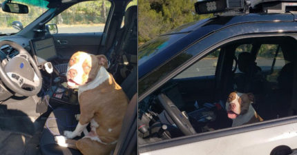 葛格可以幫我嗎?機靈比特犬走丟 找員警求救「跳警車露憨笑」:走吧找馬麻去
