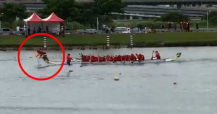 影/龙骑士现身!划龙舟狂奔终点 帅气直身「夺旗」5秒听到喀擦…整株人消失