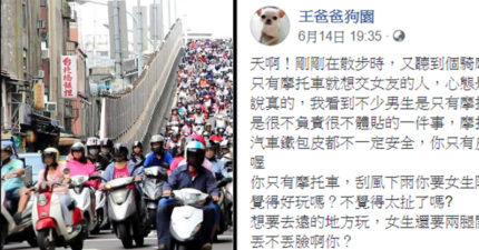 没四轮不要把妹!他砲轰台男骑车想交女友可耻 「两腿开开陪玩」根本糟蹋爱人