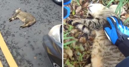 貓咪遭狠撞肇事逃逸吐血死,暖騎士「徒手抱遺體到樹叢」邊摸摸:不痛了!(影片)