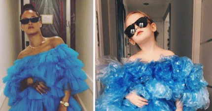 藝術家老媽用「塑料+錫箔」變出20位明星紅毯造型 女兒超專業表情直接99%神還原!
