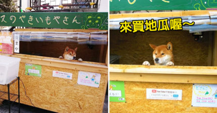 日本街頭出現「柴柴當老闆」的烤地瓜店 超萌探頭撒嬌:請給小費,我才可以買零食!