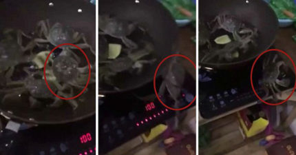 4隻螃蟹遭沸水活煮快死掉,牠爬出熱鍋「鉗子一扭關爐火」拯救同伴!(影片)