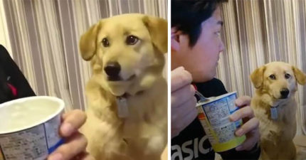 貪吃狗看主人吃優格也超想吃,被發現立馬「超傲嬌舉動」害網友笑到抽筋!(影片)