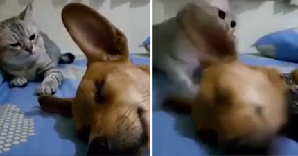影/汪汪睡一半突然放屁 喵皇臭味波及「猛巴2下頭」:臭死!給老子起來