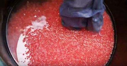 影/孵育上萬顆鮭魚卵 倒出「紅寶石瀑布」撈好撈滿太療癒