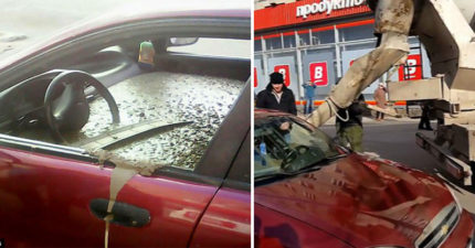 俄國狂男用水泥灌爆老婆愛車「因為她把他姓氏換成超市名稱」!1:12水泥凝固「車子全毀」!(影片)