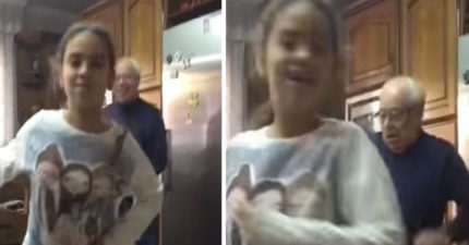 孫女超嗨熱舞!後面爺爺忍不住偷加入 一轉頭「裝沒事擦桌子」