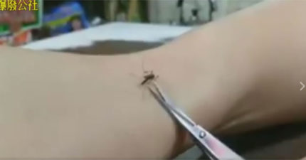 蚊子吸血吸到太爽忘我,他用剪刀快狠準「神喀擦那根」!14萬網友讚:「GG了。」(影片)