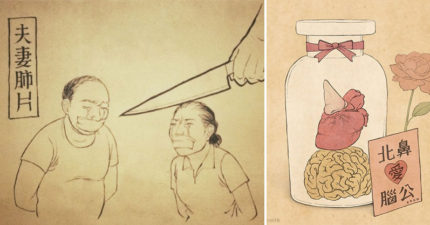 20張「只有內心黑暗的人才懂」的黑暗系復古諷刺插畫,「北鼻愛腦公」害我笑到美丁美當!